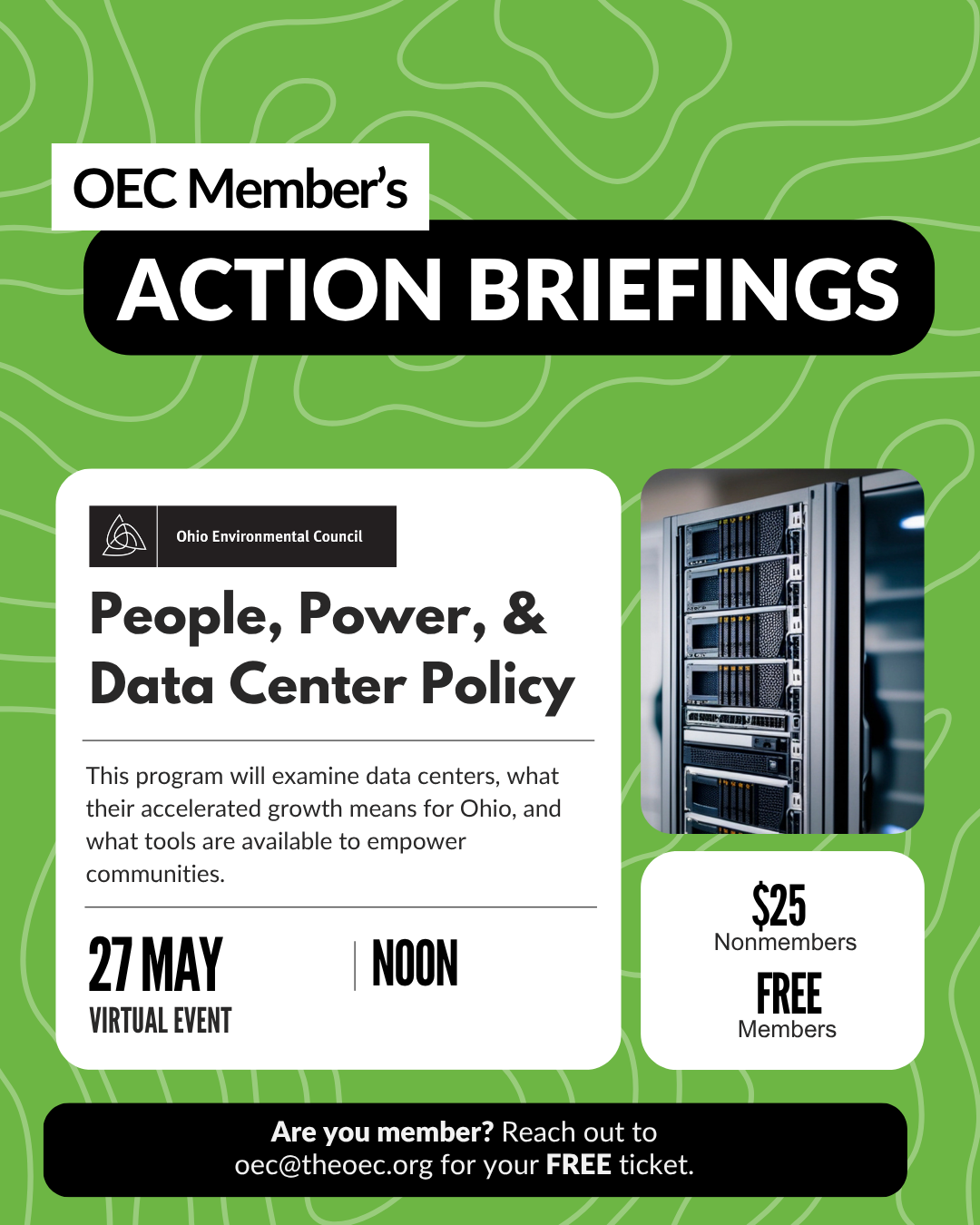 This program will examine data centers, what their accelerated growth means for Ohio, and what tools are available to empower communities.